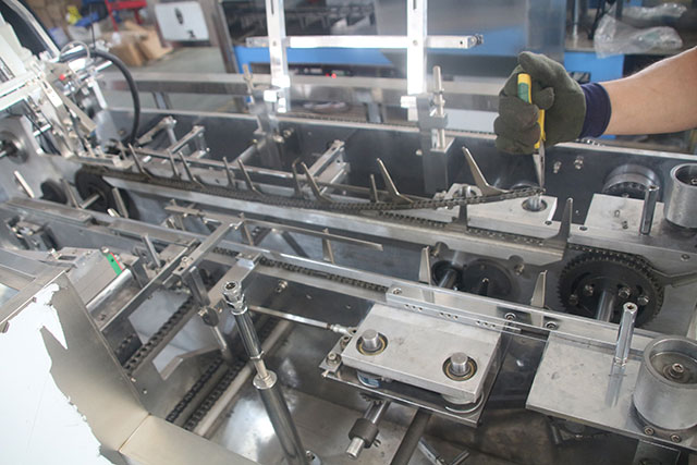 半自動(dòng)裝盒機(jī)只有封盒功能的紙盒包裝機(jī),又稱“封盒機(jī)”。半自動(dòng)裝盒機(jī),需用手工開盒、裝盒,再將裝有物料的盒子經(jīng)過(guò)機(jī)器封盒。自動(dòng)裝盒機(jī)帶有自動(dòng)開盒、入料、封盒功能的紙盒包裝機(jī)。全自動(dòng)裝盒機(jī)帶有自動(dòng)放料或與
